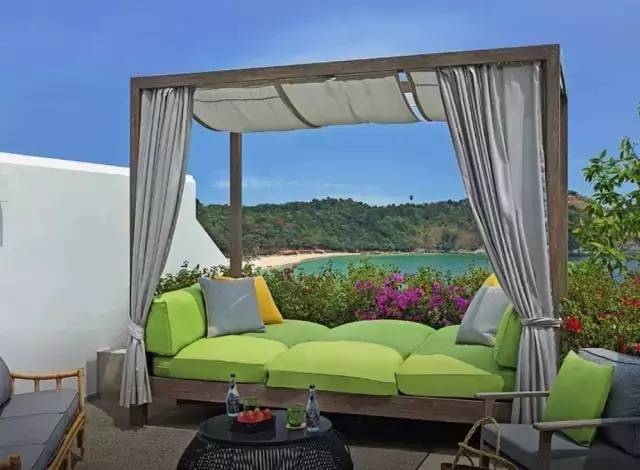 小巧精致的臥室,寬敞舒適的榻榻米,室內(nèi)室外渾為一體的自然愜意。晚風(fēng)輕輕的吹過蔥郁的樹木,明黃的燈光像是點(diǎn)亮了整幅畫。 ⒊ 泰國(guó) 普吉島奈函酒店