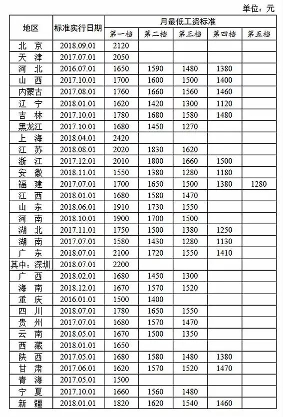 1月10日,人社部網(wǎng)站公布全國各地區(qū)月最低工資標(biāo)準(zhǔn)情況(截至2018年12月)和全國各地區(qū)小時最低工資標(biāo)準(zhǔn)情況(截至2018年12月)。快來看看你家鄉(xiāng)的最低工資標(biāo)準(zhǔn)是多少!