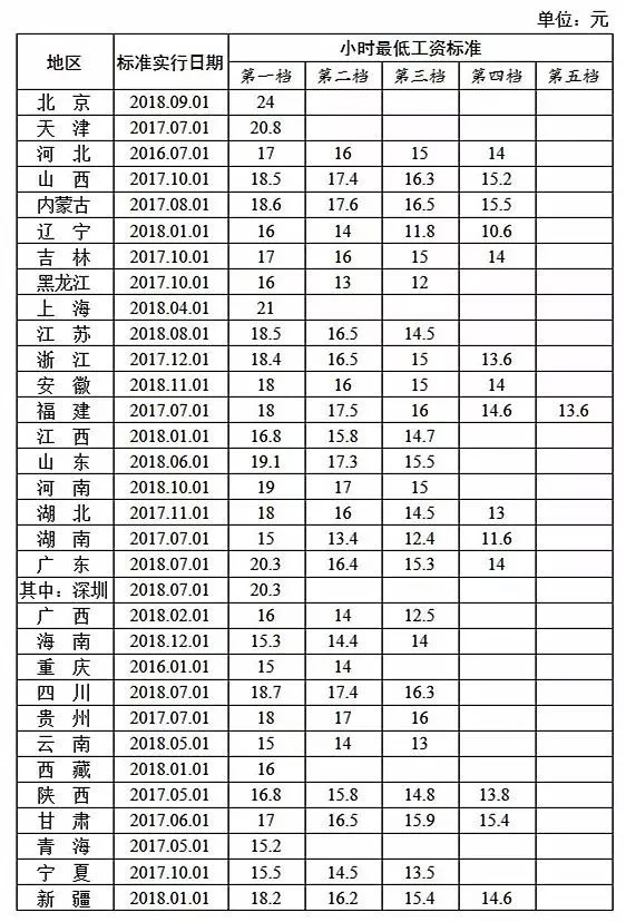 而從小時工資來看,小時最低工資標(biāo)準(zhǔn)最高的地區(qū)是北京,達(dá)到了24元;北京、天津、上海、廣東4個地區(qū)的小時最低工資標(biāo)準(zhǔn)超過了20元。