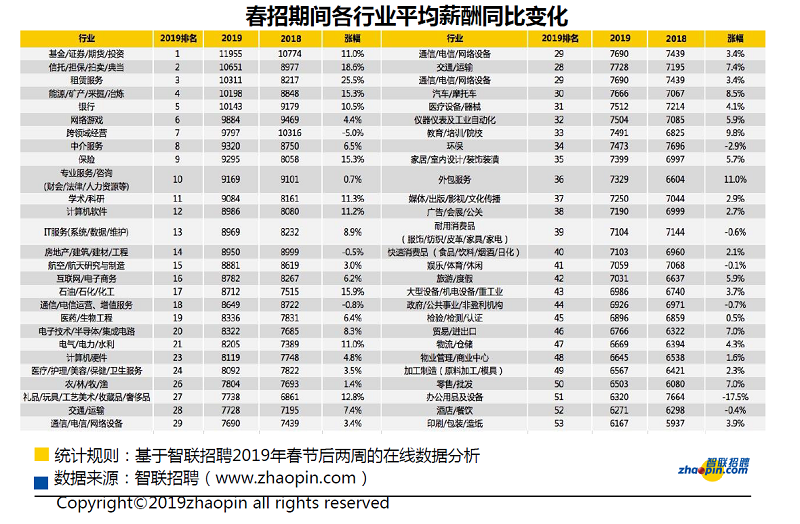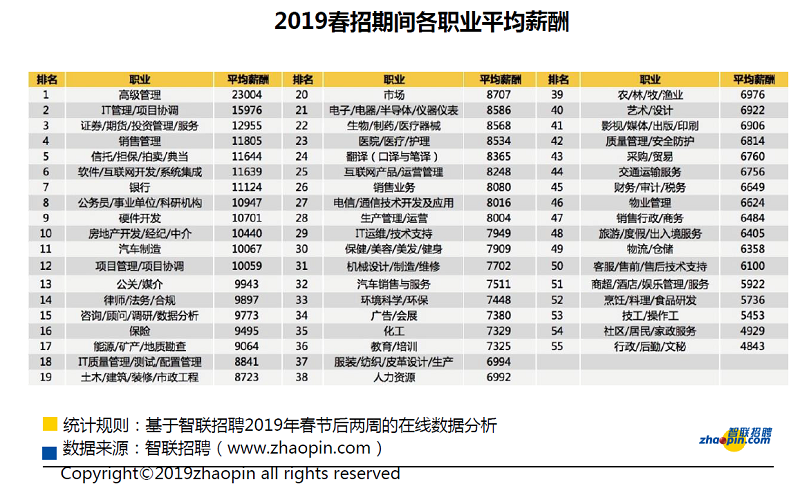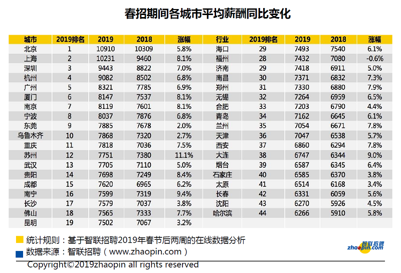 | 智聯招聘發(fā)布《2019春季人才流動報告》春招平均薪酬為8,165元 |