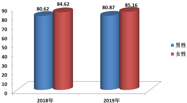 杭州市男性、女性人均期望壽命有差別,差距有所擴(kuò)大。其中2019年全市男性人均期望壽命為80.87歲,女性85.16歲,比2018年分別增加0.25歲和0.54歲。男女人均期望壽命差距為4.29歲,比2018年4歲差距擴(kuò)大了0.29歲。 重大慢性病過(guò)早死亡率為7.20%