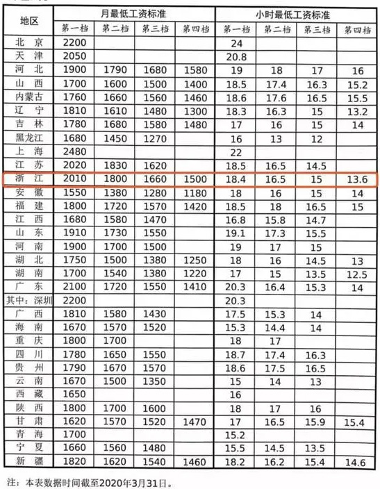 | 最新!全國各地最低工資排名出爐!浙江排名第六!看你拖后腿了沒 |