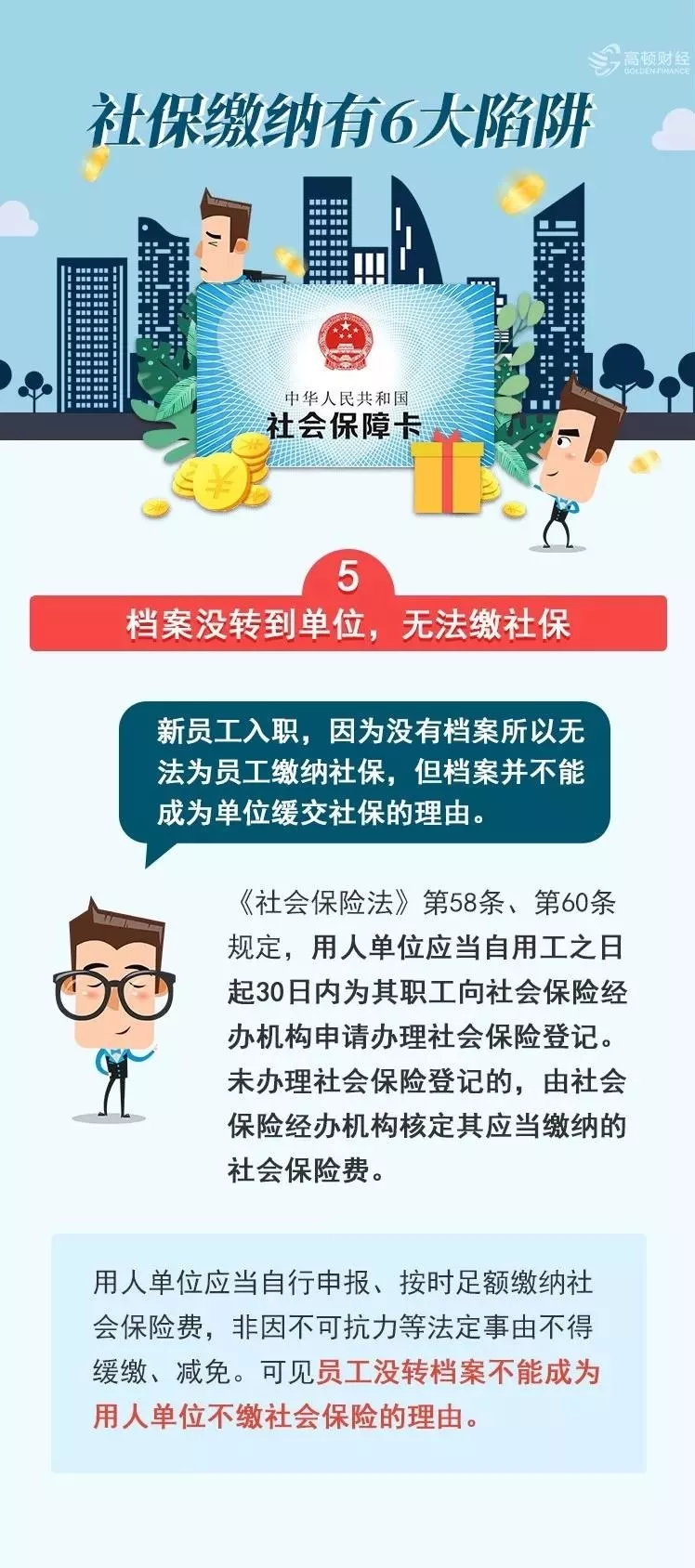 社保繳費基數(shù)每年都在調(diào)整,每年都在漲!然而對于沒有用到社保的人民群眾繳納社保都是人從眾心理... 社保繳費基數(shù): 社保繳費基數(shù)就是你每月需要出資繳納社保的那部分金額,一般是由各省市社會平均工資的60%--300%為繳納基數(shù),比如社會平均工資是3000元,繳納的基數(shù)可以是1800元--9000元。 社保繳費基數(shù)如何確定: 社保繳費基數(shù)一般是本人工資多少,社保繳費基數(shù)就是多少; 比如你月收入4500,那么4500就作為你繳納社保的基數(shù)。 但如今大部分企業(yè)為降低成本,都是以最低基數(shù)為企業(yè)員工繳納社保。 另有以下特例: 1、假如你的收入高于當(dāng)?shù)厣夏甓嚷毠て骄べY300%的,以當(dāng)?shù)厣夏甓嚷毠て骄べY的300%為繳費基數(shù); 2、假如你的收入低于當(dāng)?shù)厣弦荒曷毠て骄べY60%的,以當(dāng)?shù)厣弦荒曷毠て骄べY的60%為繳費基數(shù); PS:意思就是最高不能高過300%,最低不能低于60%; 具體有沒有超過可以根據(jù)規(guī)則自己測算~~ 社保繳費基數(shù)更改時間: 社保繳費基數(shù)一般是每年更改一次。 6、注意!社保繳納的6個陷阱 社保繳納影響著勞動者以后的退休養(yǎng)老等諸多待遇,是給自己的退休生活上了一道保險,然而很多公司卻有意無意地?fù)p害勞動者的合法權(quán)益。以下就盤點6種情況,小心中招: