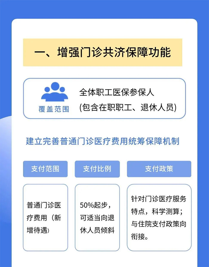 變化二:普通門診費用擬納入報銷 這個變化最直接的影響就是:可以報銷的費用變多了。 自1998年職工醫(yī)保制度改革以來,我國的基本醫(yī)保制度都是以保住院為核心,為住院提供比較高的待遇保障。 門診保障這塊,一直比較薄弱,目前只有北京、上海、深圳等一些經(jīng)濟比較發(fā)達的城市可以報銷門診。 其他地方的門診費用主要依靠個人賬戶來支付,但是,大多數(shù)人的個人賬戶里并沒有太多錢。 這也導致很多病人去住院,其實就為了吃藥能報銷。 因此,這次《征求意見稿》就提出要新增一項醫(yī)保待遇:把一些門診常見病納入醫(yī)保統(tǒng)籌基金支付范圍,報銷比例最低50%。 這樣算下來,醫(yī)保待遇不僅沒有降低,而且是變得越來越好了!