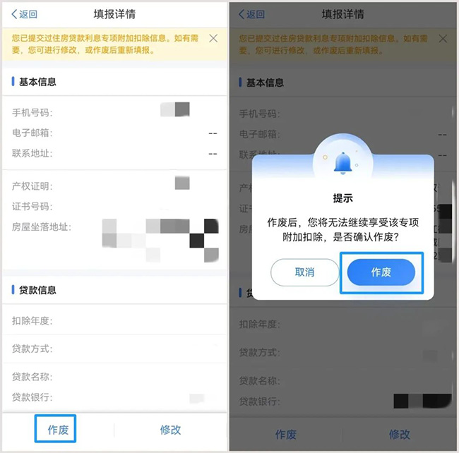 情形三:2024年需作廢專項(xiàng)附加扣除項(xiàng)目   1.點(diǎn)擊【專項(xiàng)附加扣除填報(bào)】,進(jìn)入填報(bào)頁(yè)面。【填報(bào)記錄】選擇【查詢年度2024年】。 2.點(diǎn)擊進(jìn)入想要作廢的專項(xiàng)附加扣除項(xiàng)目。點(diǎn)擊左下角【作廢】,確認(rèn)作廢后,即可作廢成功。